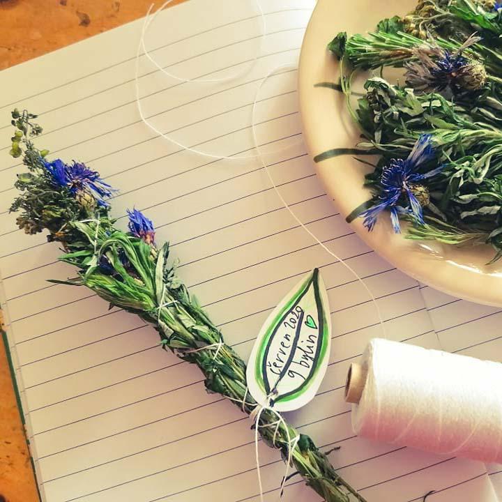 Bylinky můžete také usušit „naplacato“ a vytvořenou směs použít k vykuřování. Tahle speciální kombinace kouzelných rostlin vás pak může provázet v příštích měsících. Třeba jako vánoční purpura pálená při zimním slunovratu… Usušené byliny se hodí i do ochranného váčku, hlavně pokud je ochrana vaše téma a cítíte potřebu se chránit.