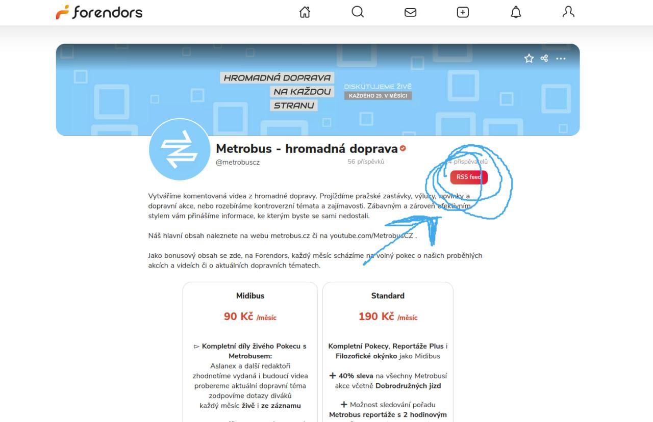 Krok 1: Zkopírujte si RSS adresu přímo z našeho profilu na forendors.cz/metrobuscz kliknutím na tlačítko↓