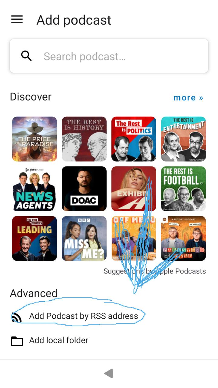 Krok 2: Otevřete svou oblíbenou podcastovou aplikaci a zvolte "Přidat podcast pomocí RSS" ↓