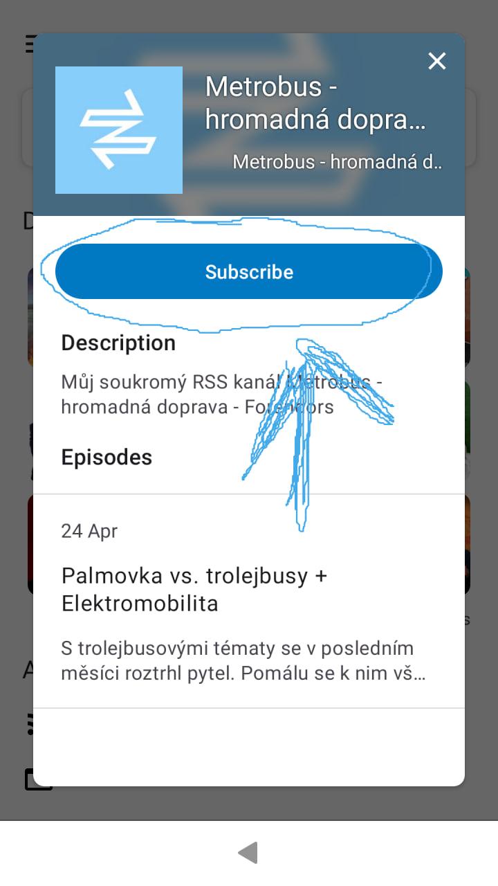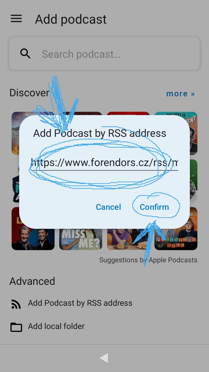 Příklad je z aplikace Antennapod :) Ostatní aplikace budou podobné, návod pro Apple Podcasts nabízí přímo Forendors.