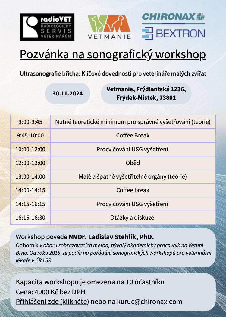 Tentokrát jde o speciální událost! Není to sice můj první workshop, ale určitě má v sobě něco navíc. Je to totiž první akce, kterou organizuji ve spolupráci s firmou Chironax a klinikou Vetmanie. A aby byl zaručen opravdu individuální přístup, je kapacita omezená.