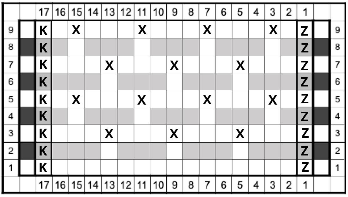 čísla 1-17 označují očka,