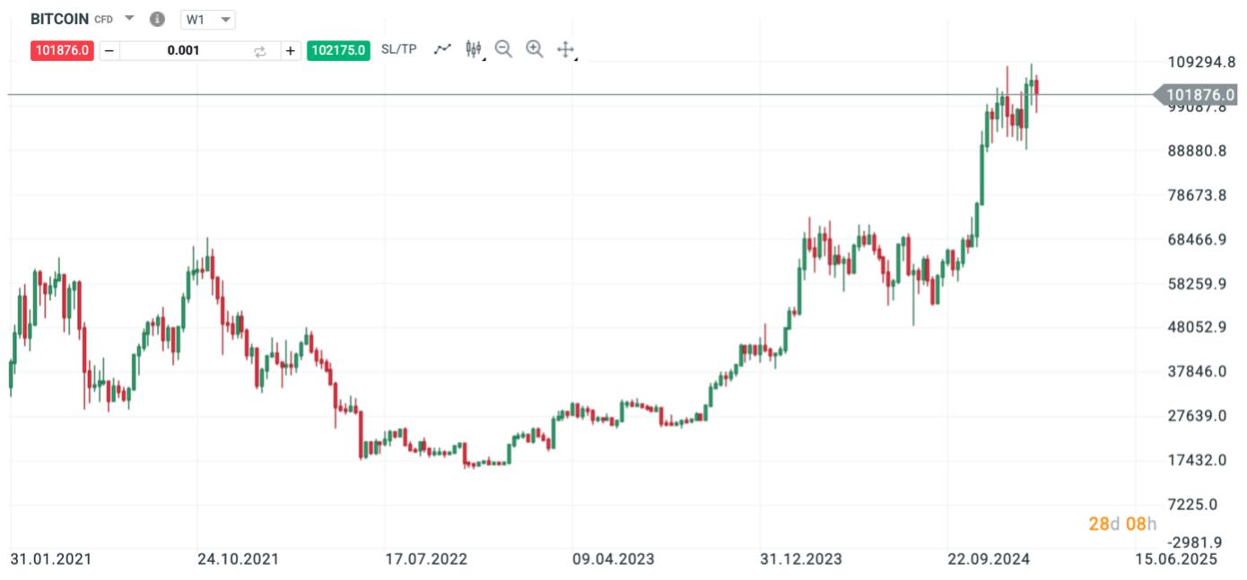 Aktuálně se bitcoin obchoduje kolem 100 tisíc dolarů za jeden bitcoin a hodně se spekuluje, kam až jeho hodnota může vyrůst.
