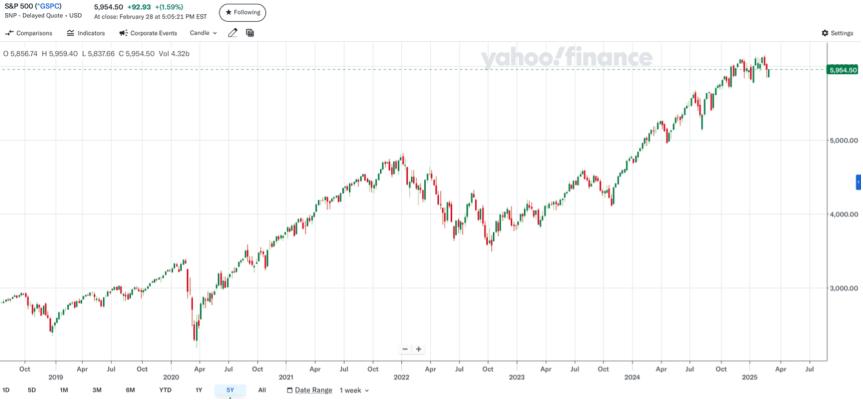 Americký akciový index S&P 500, který obsahuje 500 největších amerických společností, za únor poklesl o 1,42% a uzavřel měsíc na hodnotě 5 954 bodů.