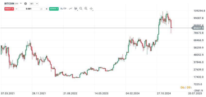 Bitcoinu se v únoru nevedlo moc dobře. Z hodnot kolem 100 tisíc dolarů v únoru poklesl o cca 15% na hodnoty kolem 85 tisíc dolarů.