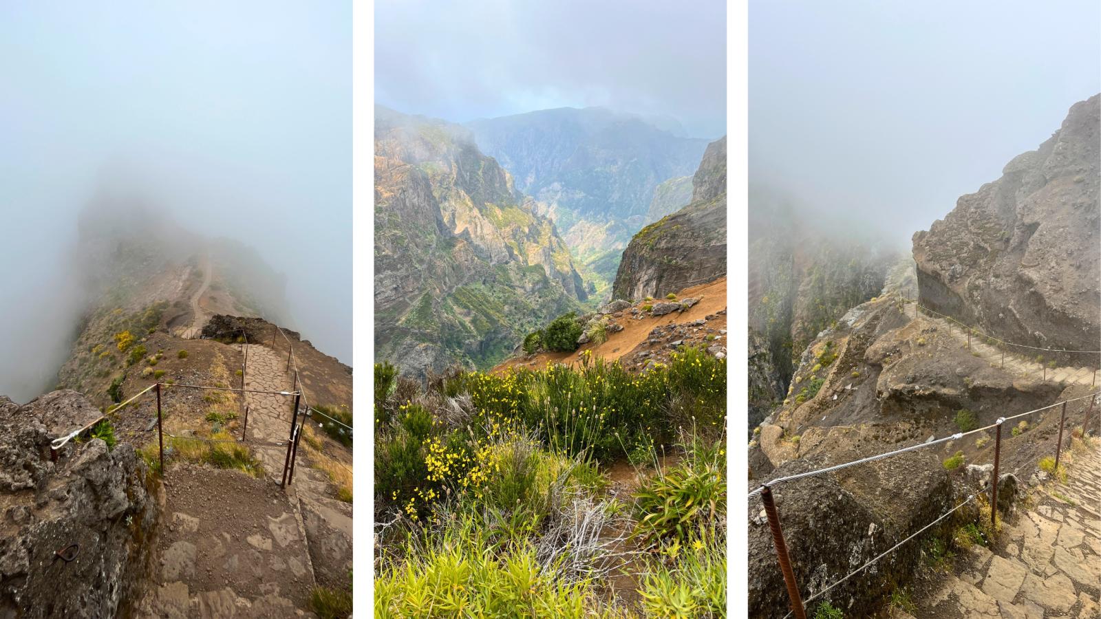 Ta trasa určitě taky byla jednou z nejkrásnějších, co jsem absolvovala, jen si toho nejsem úplně vědoma. Měli jsme pořád docela smůlu na počasí a vrcholky se celý den schovávaly v mracích. Musela jsem sejít všechny ty schody, abych se ocitla pod mrakem a něco viděla, a proto jsem přišla o nejkrásnější výhledy na Pico do Arieiro, kde cesta vede po horském hřebeni s hlubokými propastmi po obou stranách. Alespoň mám větší motivaci zkusit to v budoucnu znovu.