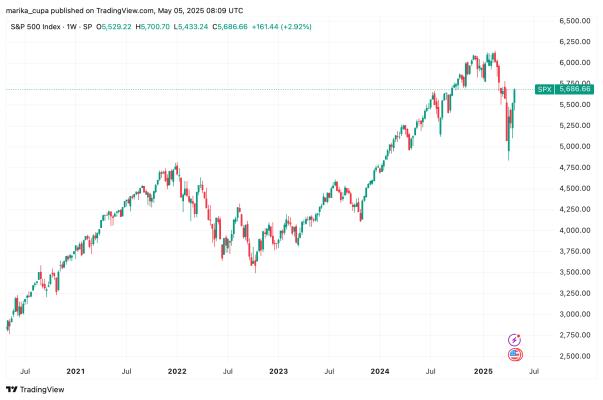 Propad se zastavil 10. dubna 2025, kdy Donald Trump oznámil 90 denní odklad cel, depresi vystřídala dobrá nálada a trhy začaly opět růst. 📈