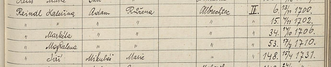 Už to málo ale stačí. Rodin Reindlových v Albrechticích mnoho nebylo. A už jen pohled do indexu prozradí, že Magdalena a Kateřina byly sestry, Josef a Marie tak byli bratranec a sestřenice... Tak proto papežský dispens, proto.