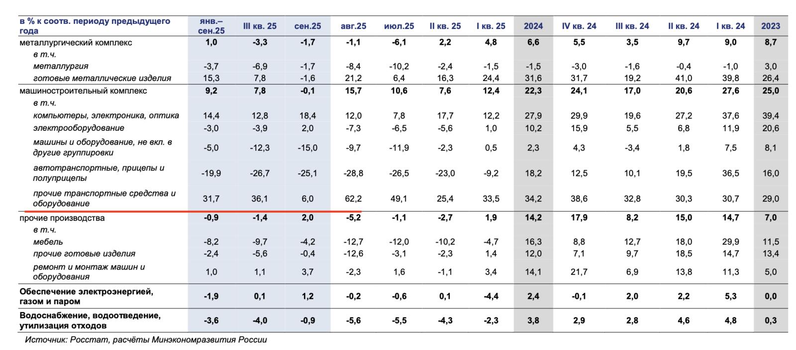 Ještě horší je to u "ostatních dopravních prostředků", což je ta jejich slavná, tajemná kategorie, kam se schovává výroba tanků, obrněných transportérů a dalších plechovek na frontu. Tady byl ten růst ještě šílenější. V srpnu 2025 hlásili neuvěřitelnej meziroční růst +62,2 %. Propaganda jela na plný obrátky. A pak přišlo září. A růst? Pouhých +6 %. To není zpomalení, to je strmý pád. Meziměsíční produkce se zhroutila o desítky proces.