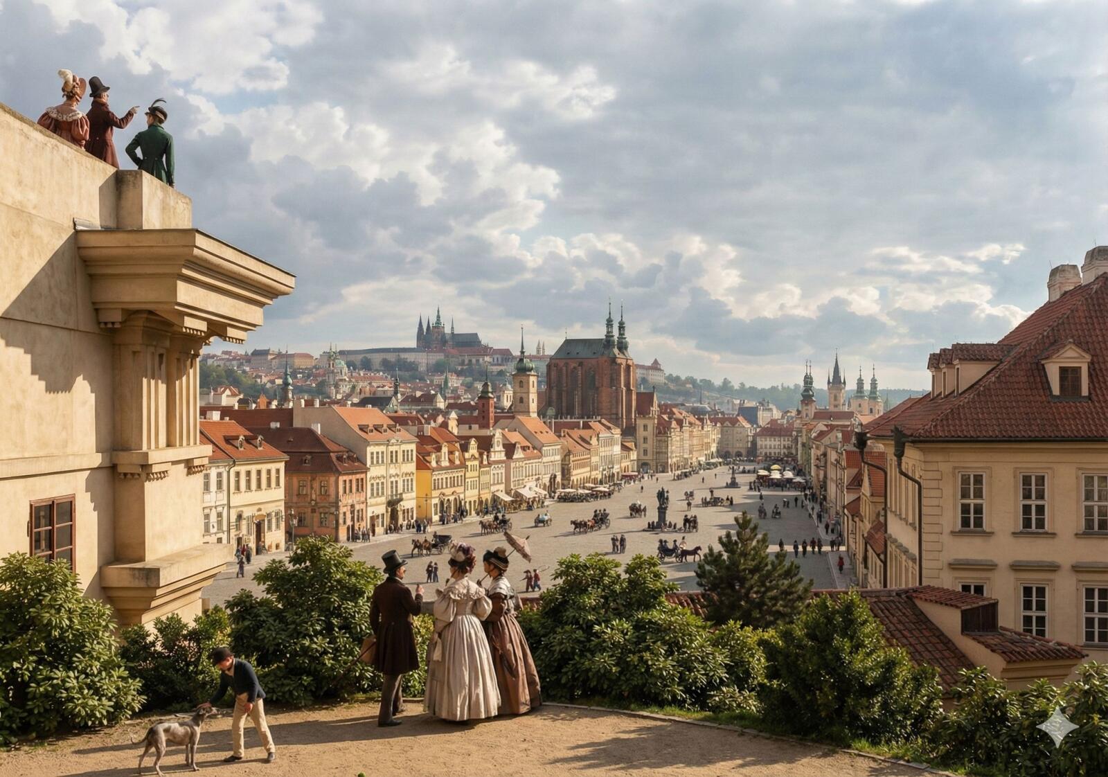 Upravený a kolorovaný obrázek pražského Václavského náměstí z počátku 19. století (kreslíř Vincenc Morstadt, rytec Friedrich Geissler + AI) berte jako vzkaz. Václavské náměstí je po každém pokusu o zlepšení jen horší a horší. Pamatuju, že bylo centrem Prahy a my se opravdu scházeli “u koně”. Kdo z vás to kdy udělal naposled? Dnes je to hlavně dopravní uzel a přestupní stanice. Gordický uzel... Rychle tam a rychle pryč. Což mi připomíná známkou pohádku bratří Grimmů o tom, jak Honza vyměnil zlato za koně, koně za krávu, krávu za prase, prase za husu, husu za brus, brus za jehlu… jako tradičně bych řekl - vraťme svět do roku 1903!