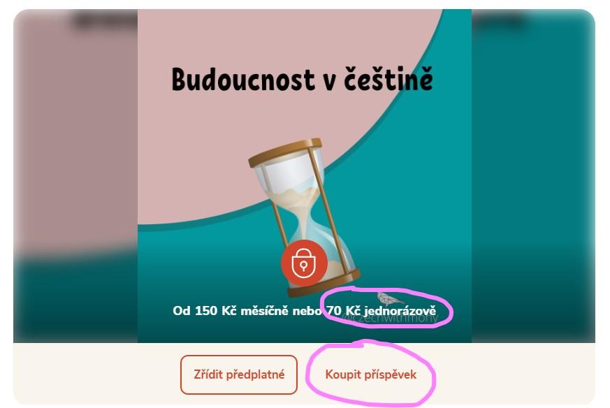 A věděli jste, že si ve skupině češtiny můžete koupit jen jednu lekci? Jestli se vám líbí jen jedna lekce a nechcete být zatím členy skupiny češtiny, na platfromě Forendors můžete zaplatit "jednorázový" příspěvek. Co to znamená? Zaplatíte jen jednou (jednorázový = one-time) a nemusíte se registrovat na celý měsíc. Zajímá vás třeba gramatický speciál "Budoucnost v češtině", ale nechcete proto platit za celý měsíc? Klikněte na "koupit příspěvek" a gramatická lekce je vaše!