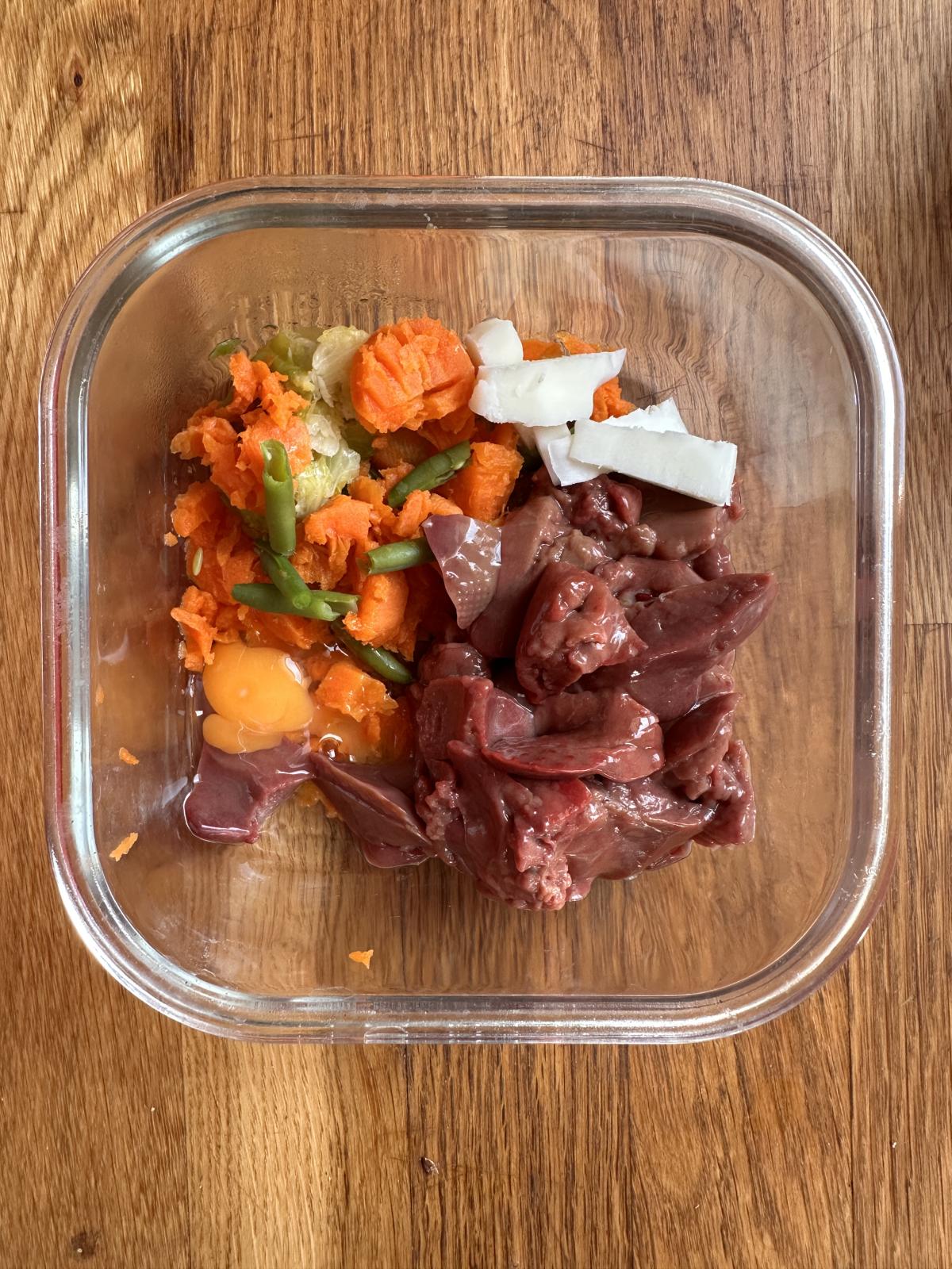 Ostatní: Další výživné suroviny zahrnovují vejce, pergu, kokosový olej, sádlo, syrové mléčné produkty, pokud jsou tolerovány (jogurt, máslo, tvaroh, sýry bez siřidel z nepasterovaného mléka jen jako pamlsek), med, vařenou bílou rýži a doplňky jako je kurkumin, grassfed kolagen.