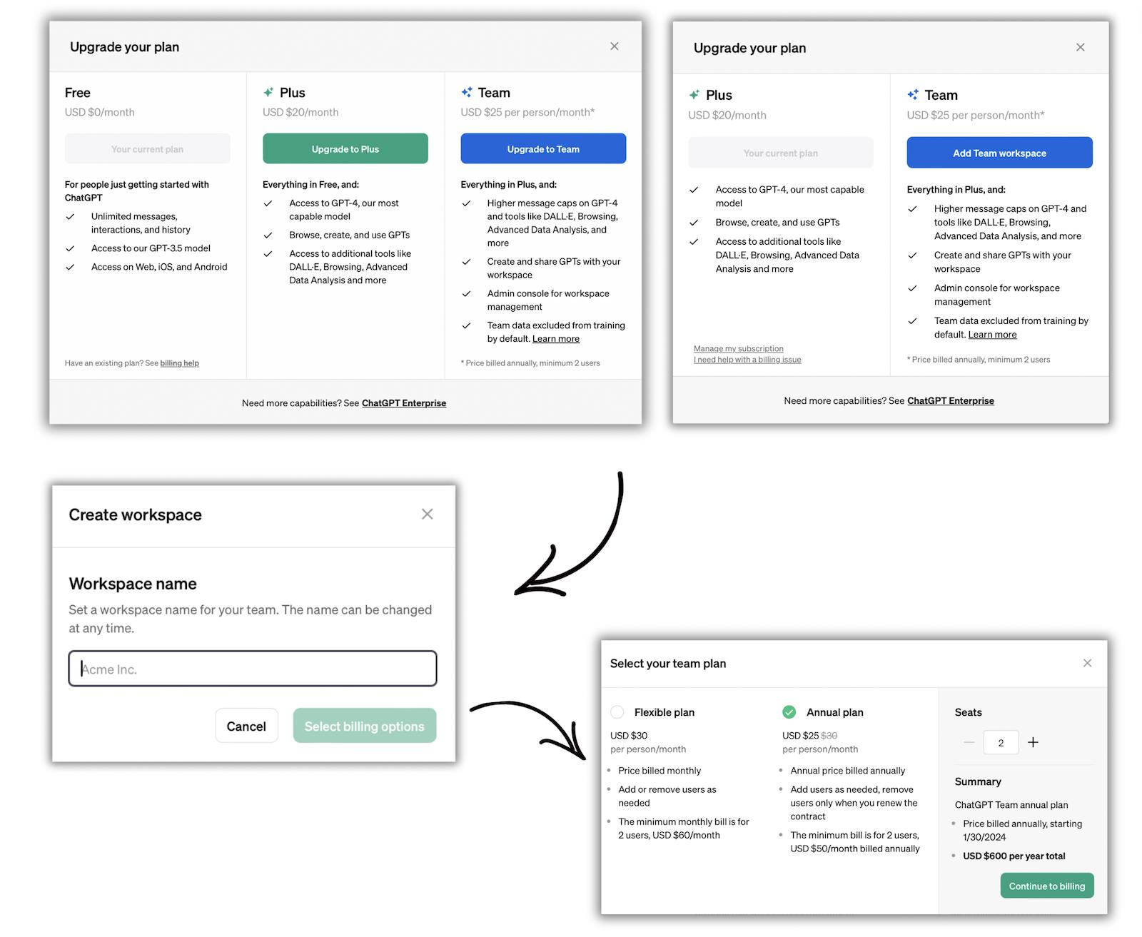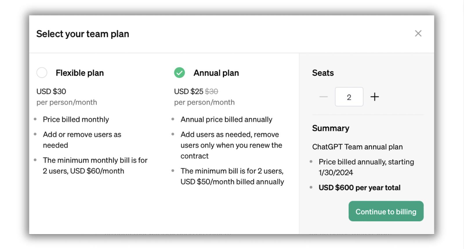 - Zaprvé je Team předplatné za $25 (místo 20 dolarů za ChatGPT Plus).