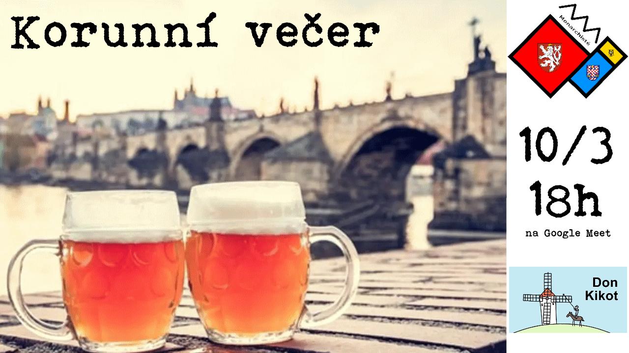 Korunní večer bude tuto neděli, 10/3 v 18 hodin. O čem se budeme bavit? O dopadech českého zemského sněmu KČ, budoucnosti organizovaného monarchismu, Řádu Bílého raka a aktivitách Uličníků. Sejdeme se opět na platformě Google Meet.