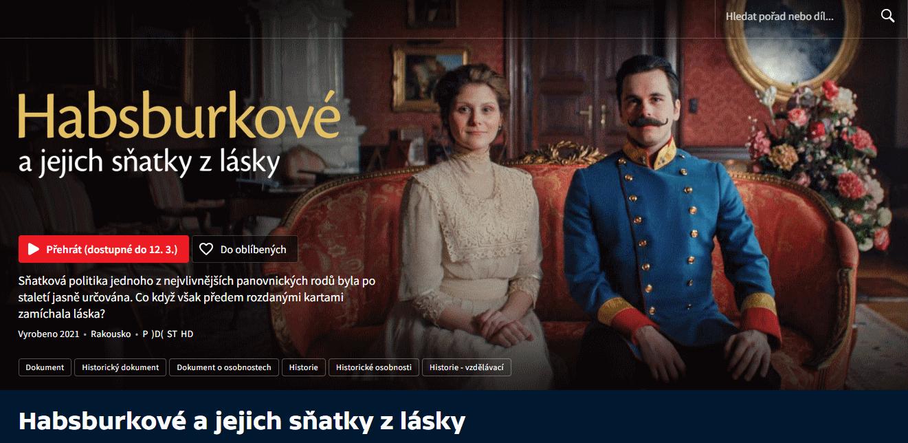 Česká televize uvedla historický dokument Habsburkové a jejich sňatky z lásky.